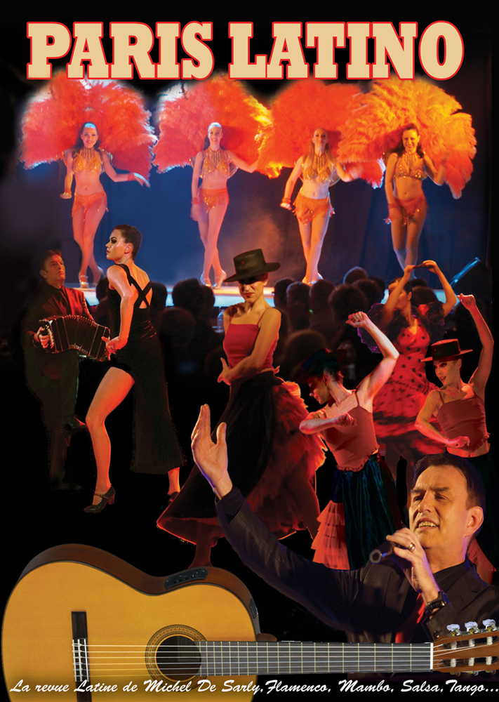 De Paris à l’Amérique du Sud, de la Samba au Mambo, de la Salsa au Flamenco Rock, c’est tout l’univers de PARIS LATINO. Michel De SARLY dans ce nouveau spectacle revisite et arrange la chanson latine. La guitare et le bandonéon soulignent ce programme à la fois nostalgique, festif et coloré, sans oublier les ballets de Laurence et les nombreux costumes, plumes et paillettes aux couleurs des tropiques.